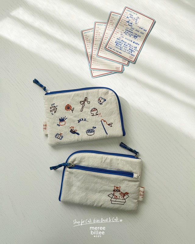 猫柄刺繍ポーチ|うちの子ABOUT MEカード4枚セット|内ポケット充実
