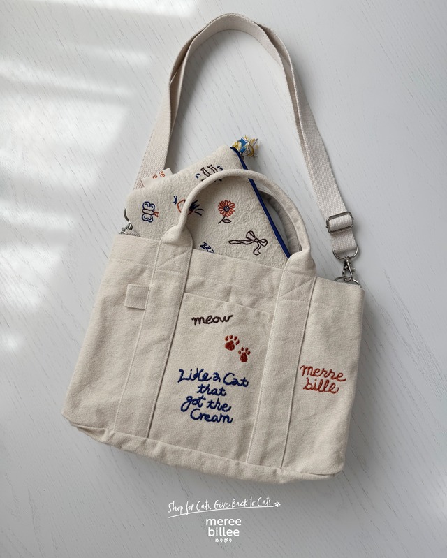 【再入荷】猫柄刺繍ミニトートバッグ |ショルダーストラップ取り外し可能|間仕切り付き