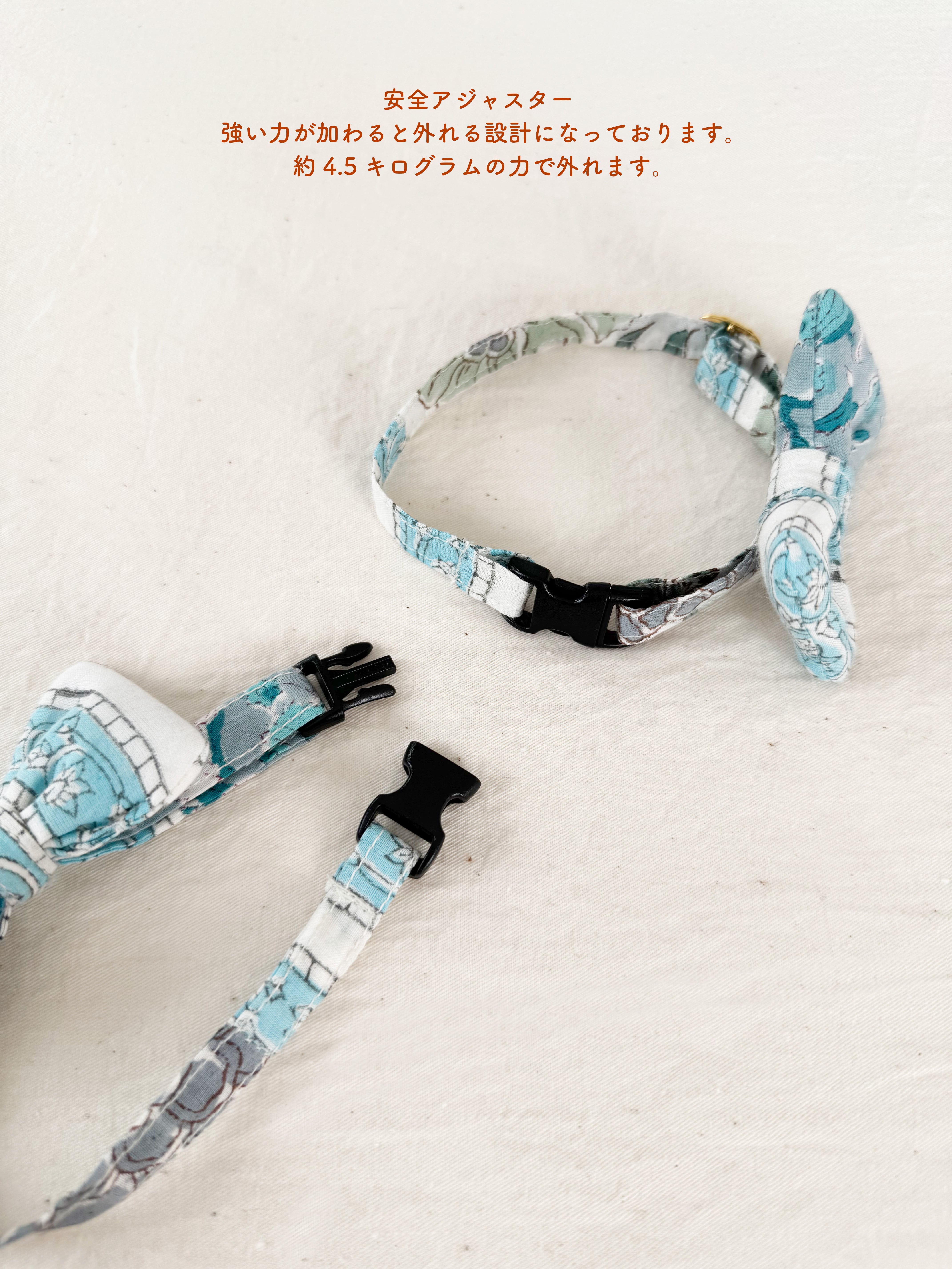 猫ちゃんの首輪には、安全アジャスターを採用しており、力が加わると外れる設計になっています。約4.5キログラムの力で外れるため、万が一の時にも安心です。