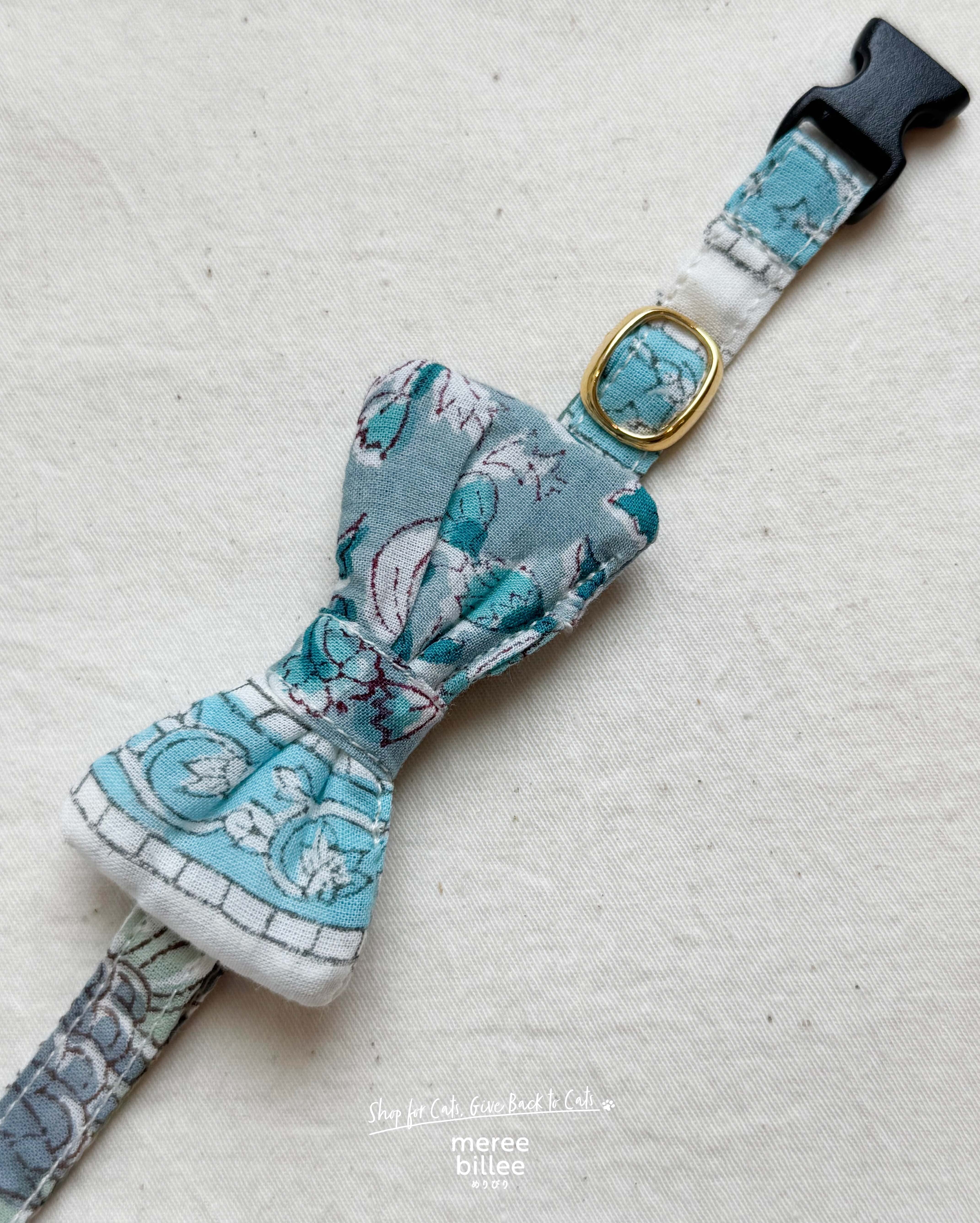 猫用リボン付き首輪&シュシュセット|肌にやさしいコットン素材 【ソフトミント】