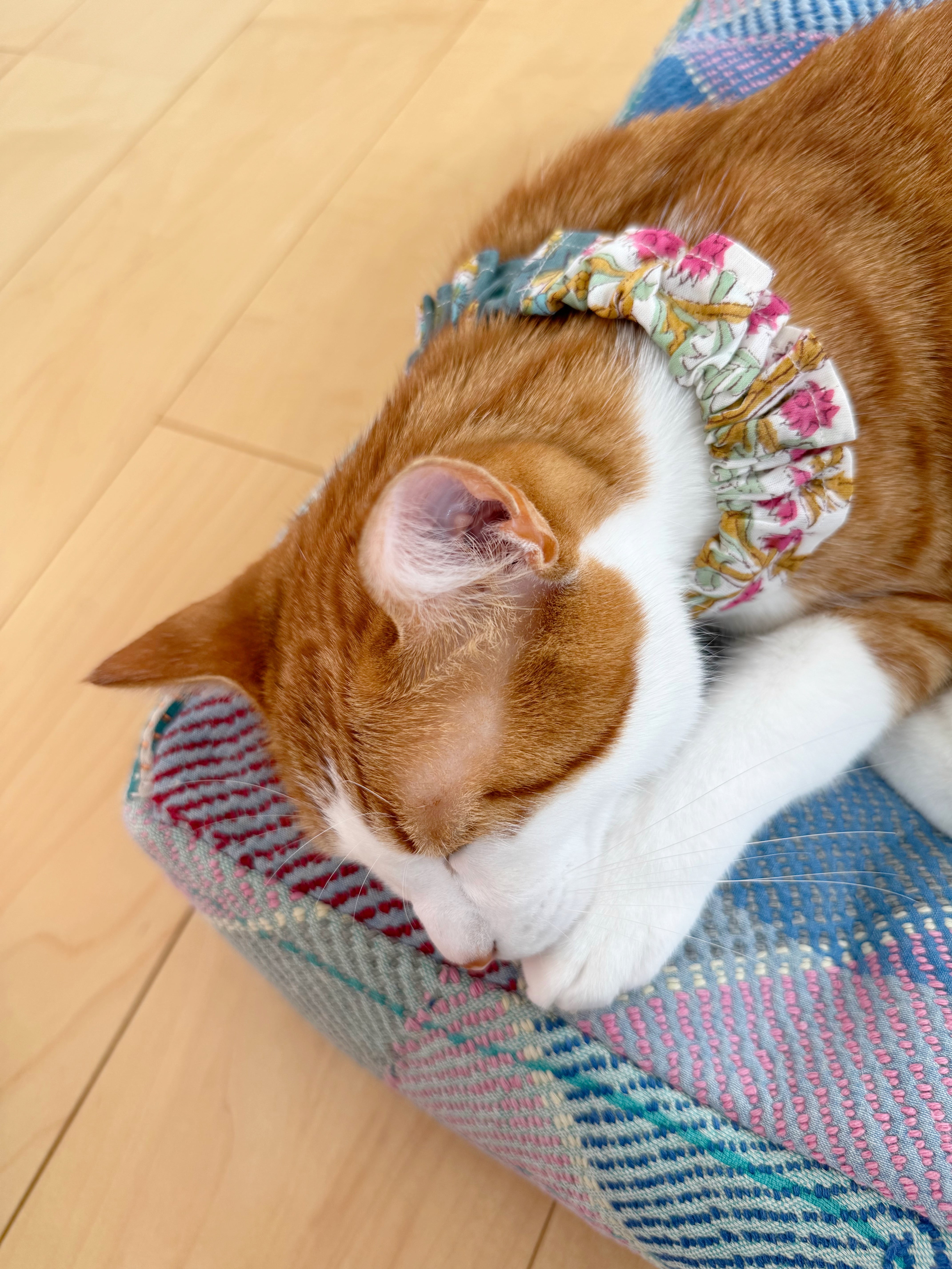 *開封直後は、ブロックプリントならではの染料の香りが感じられる場合がございます。こちらは猫ちゃんに害のあるものではございませんので、安心してご使用ください。