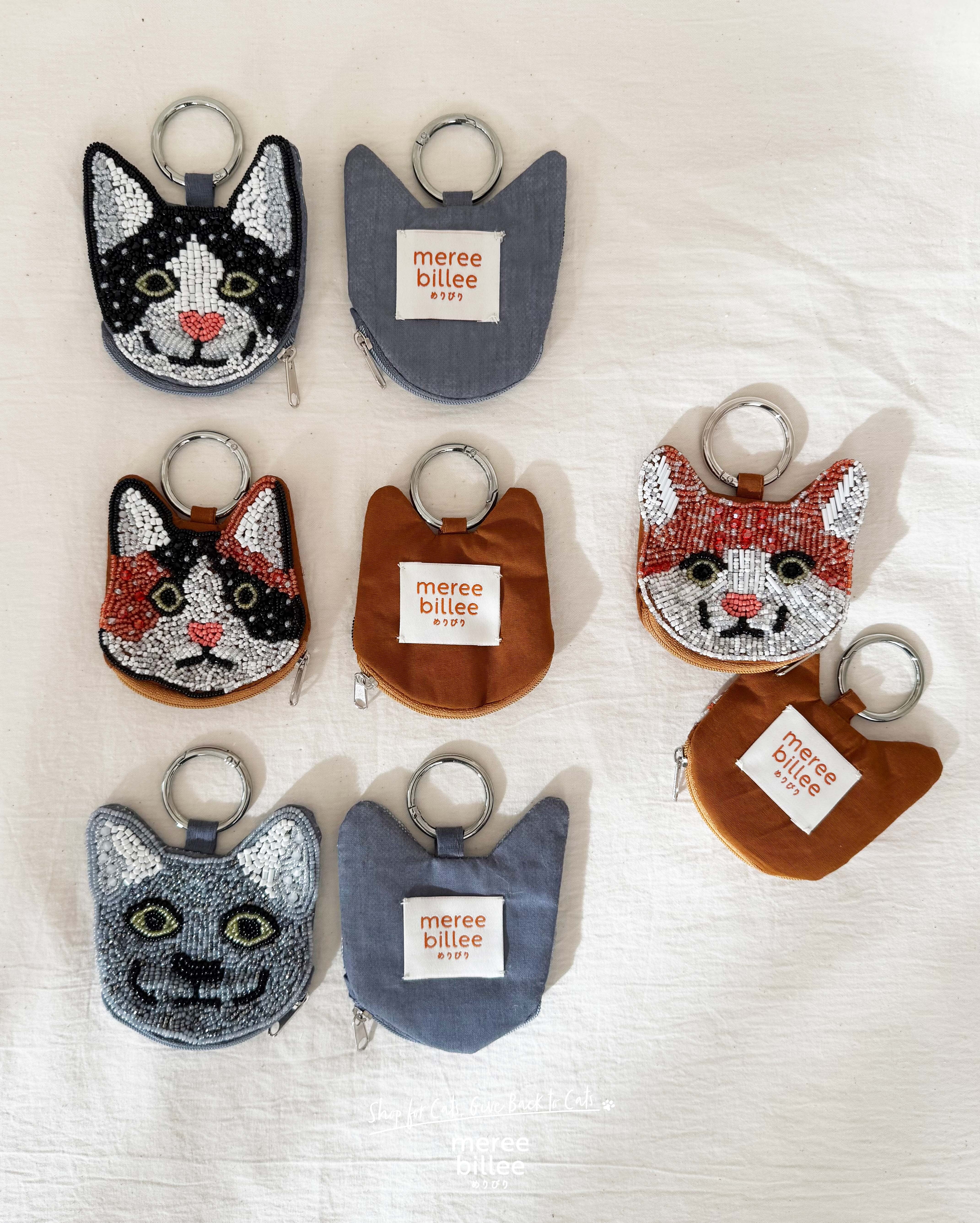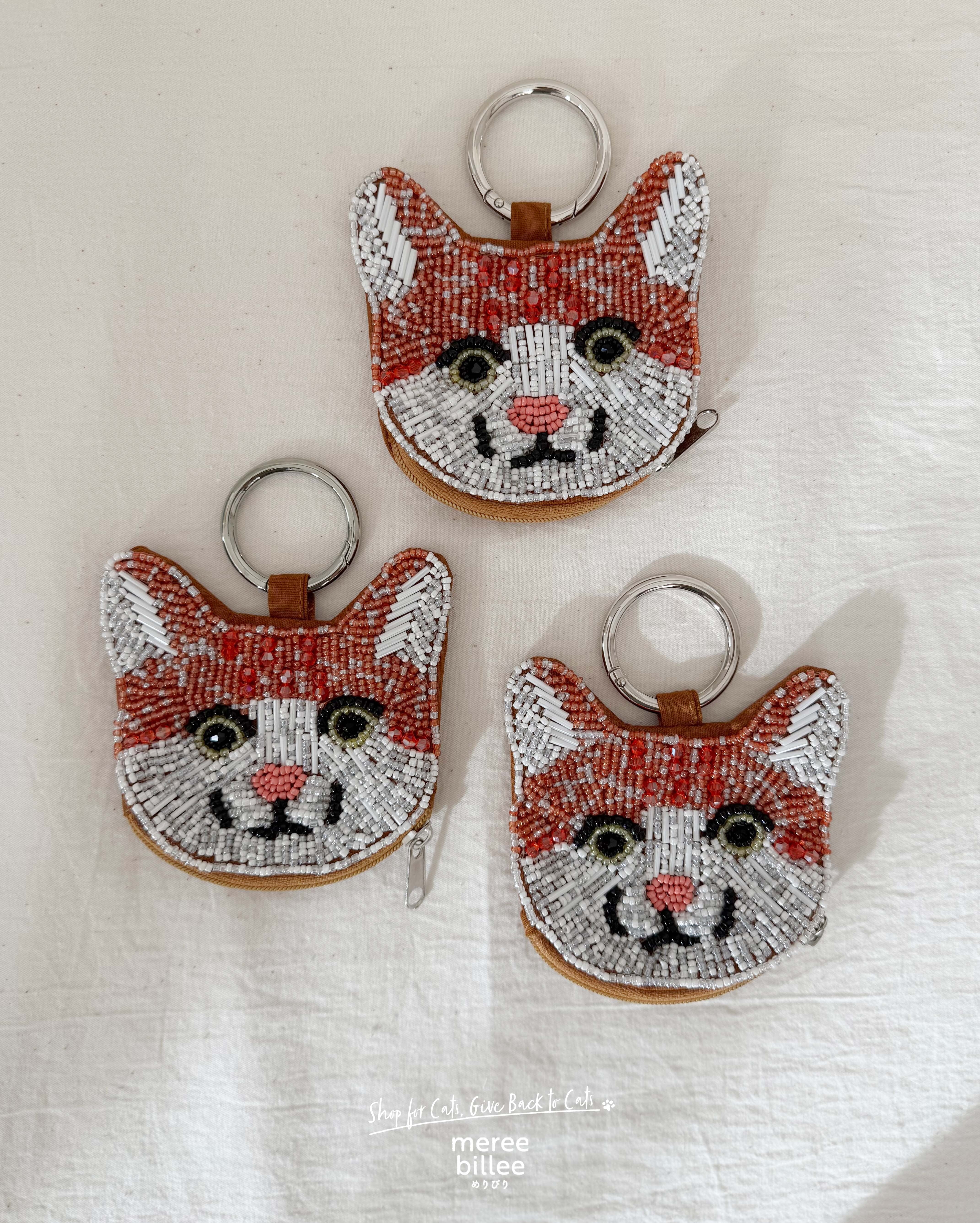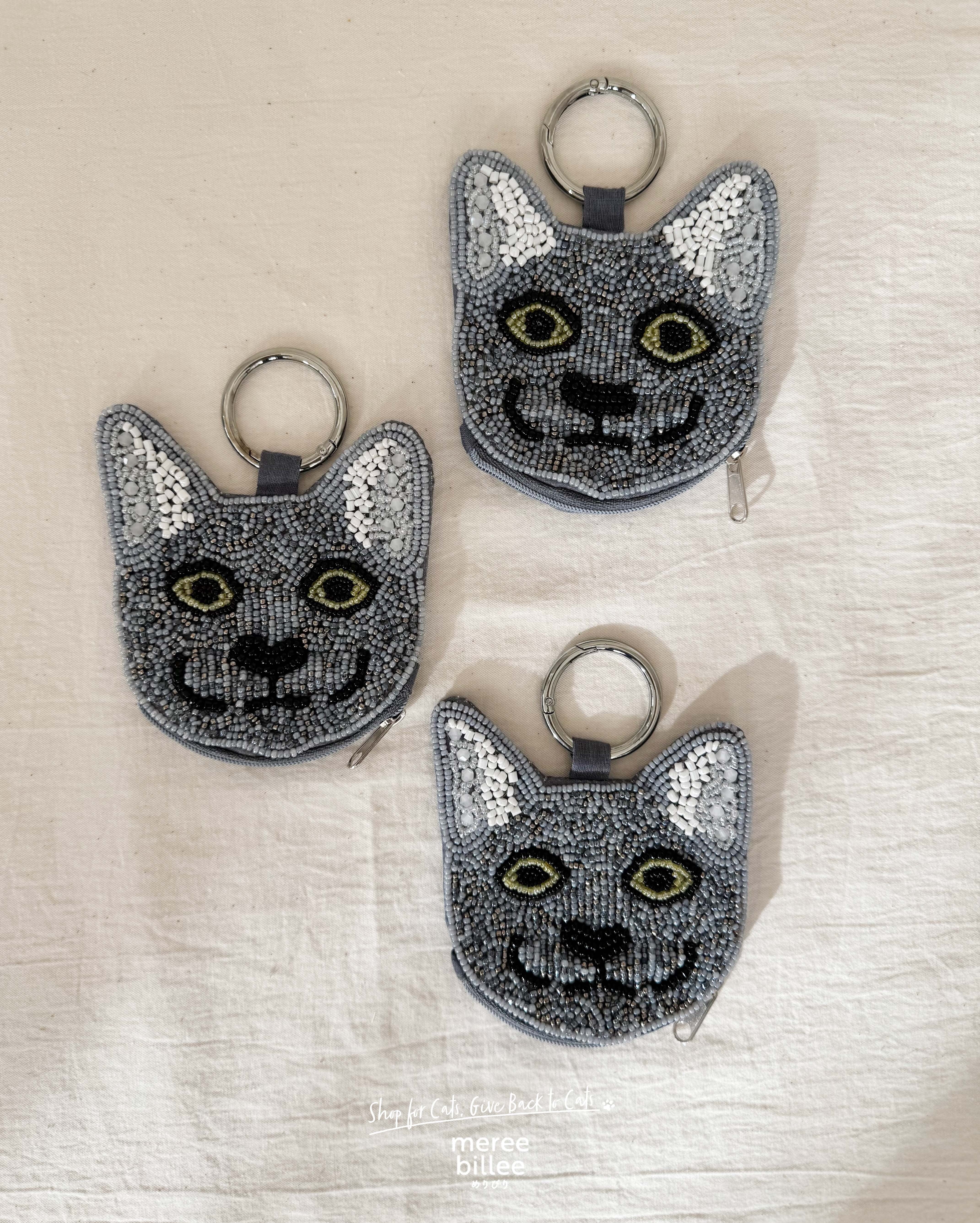 キラキラのビーズ刺繍が愛らしい、猫型ミニポーチです。