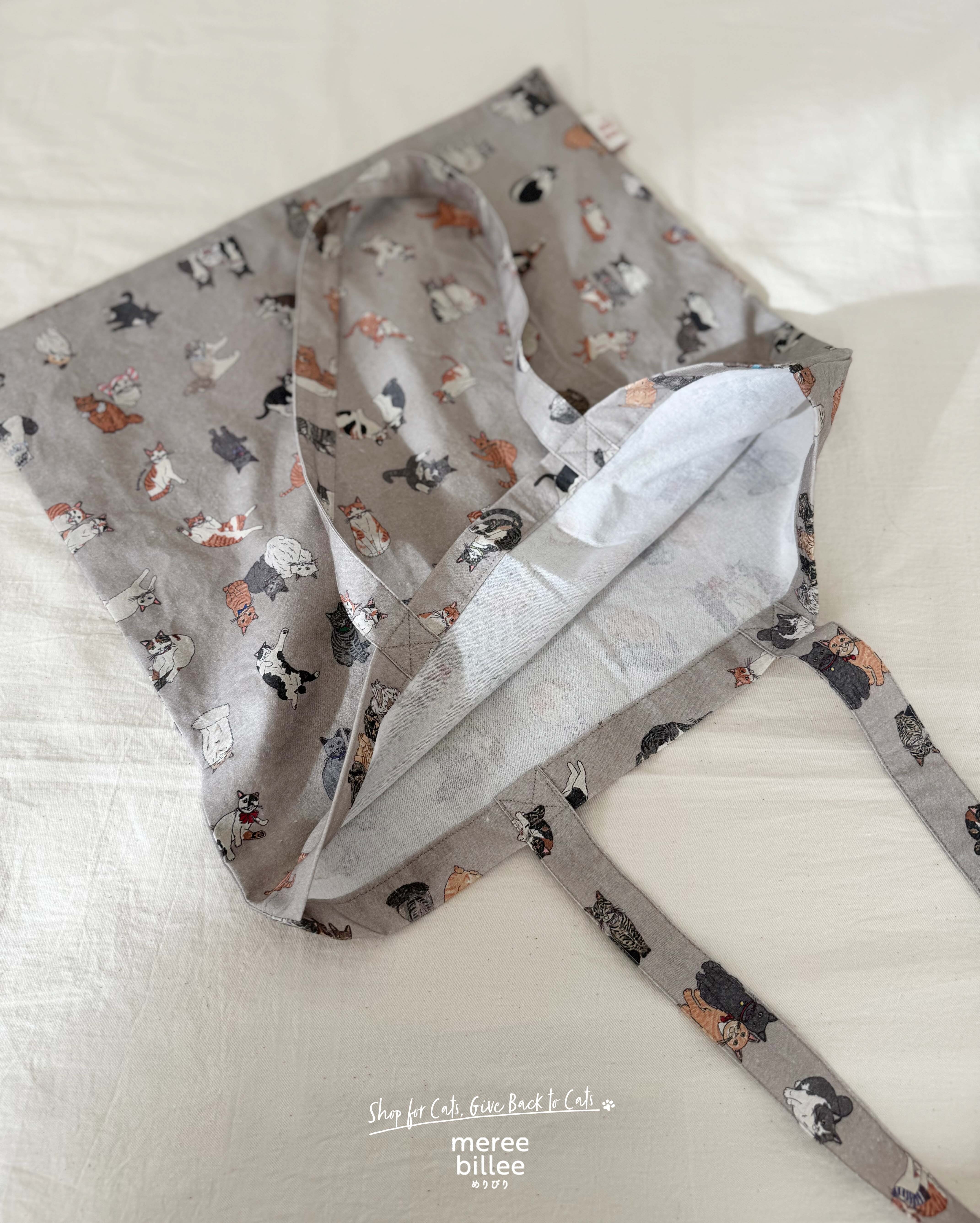 meree billeeでしか手に入らない、特別な猫柄トートバッグです。