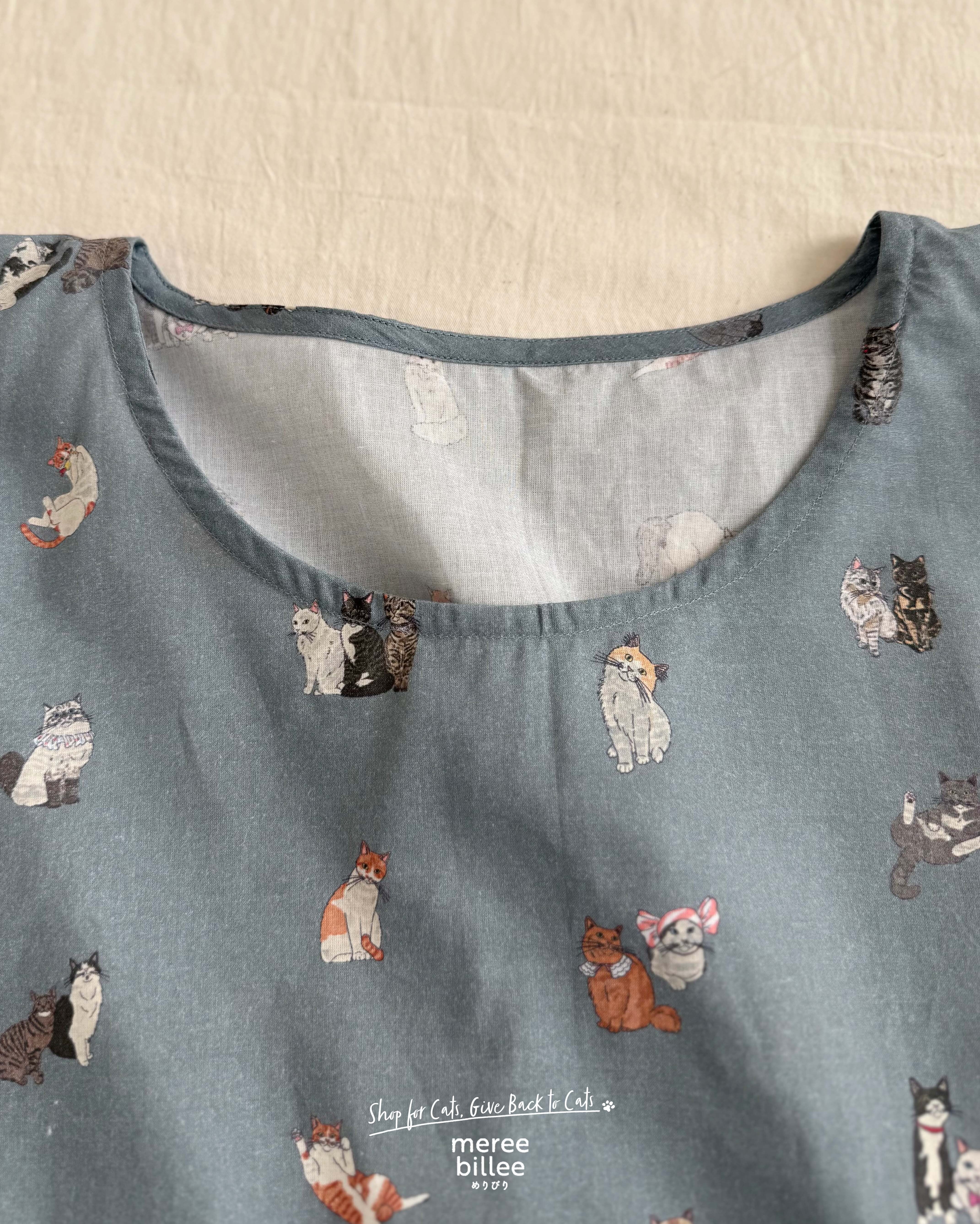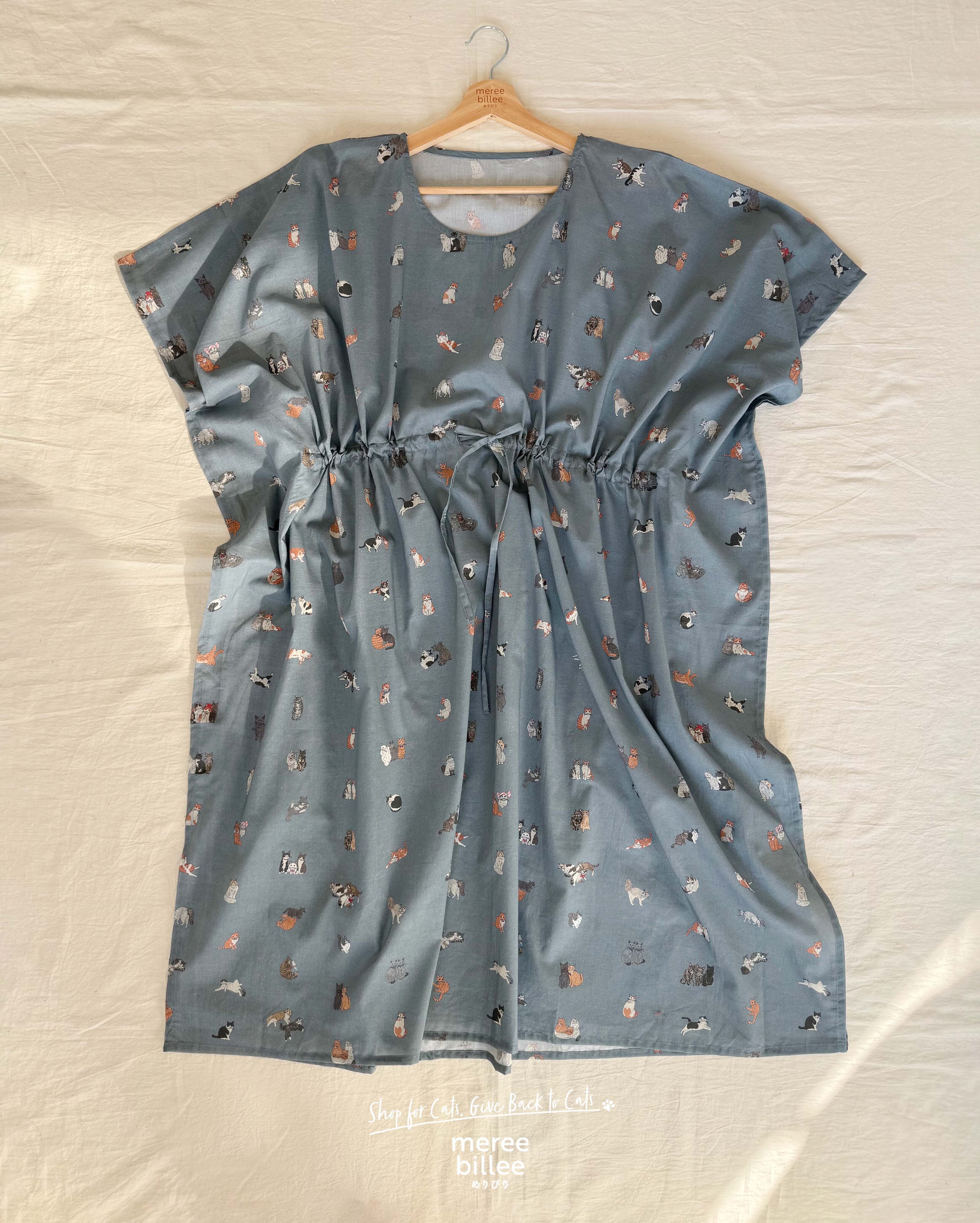 猫柄ルームウェア|カフタンワンピース|ゆったりフリーサイズ|コットン部屋着