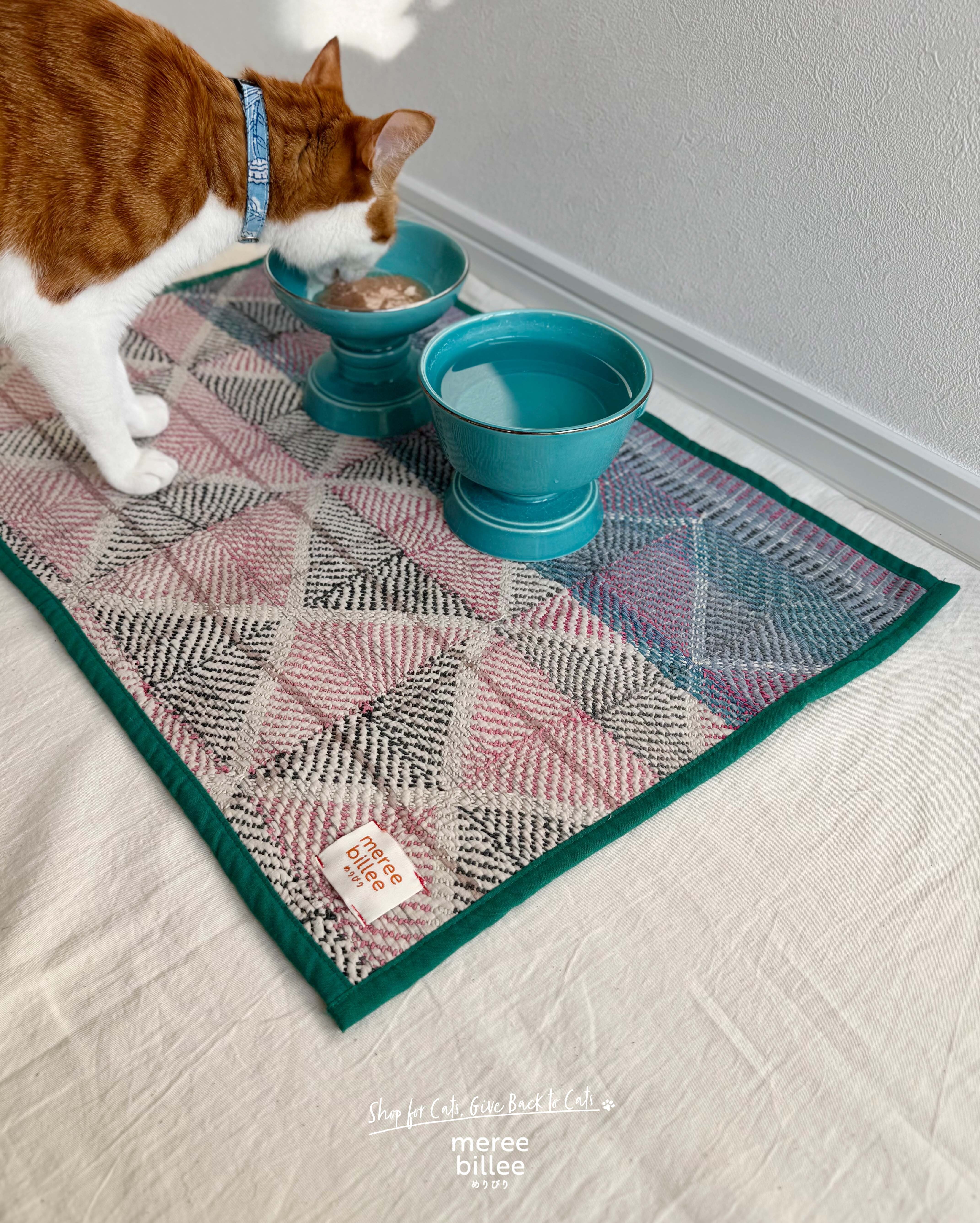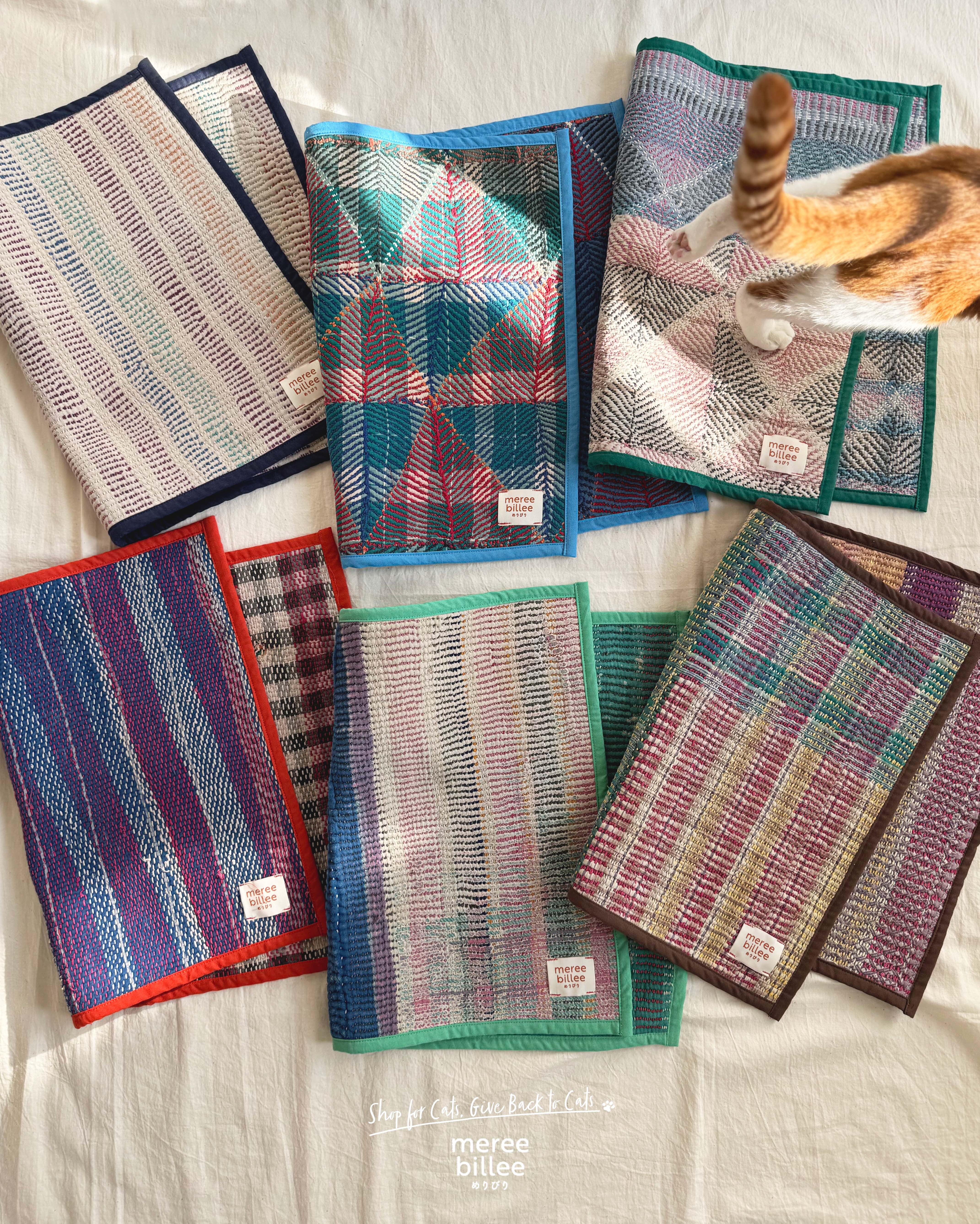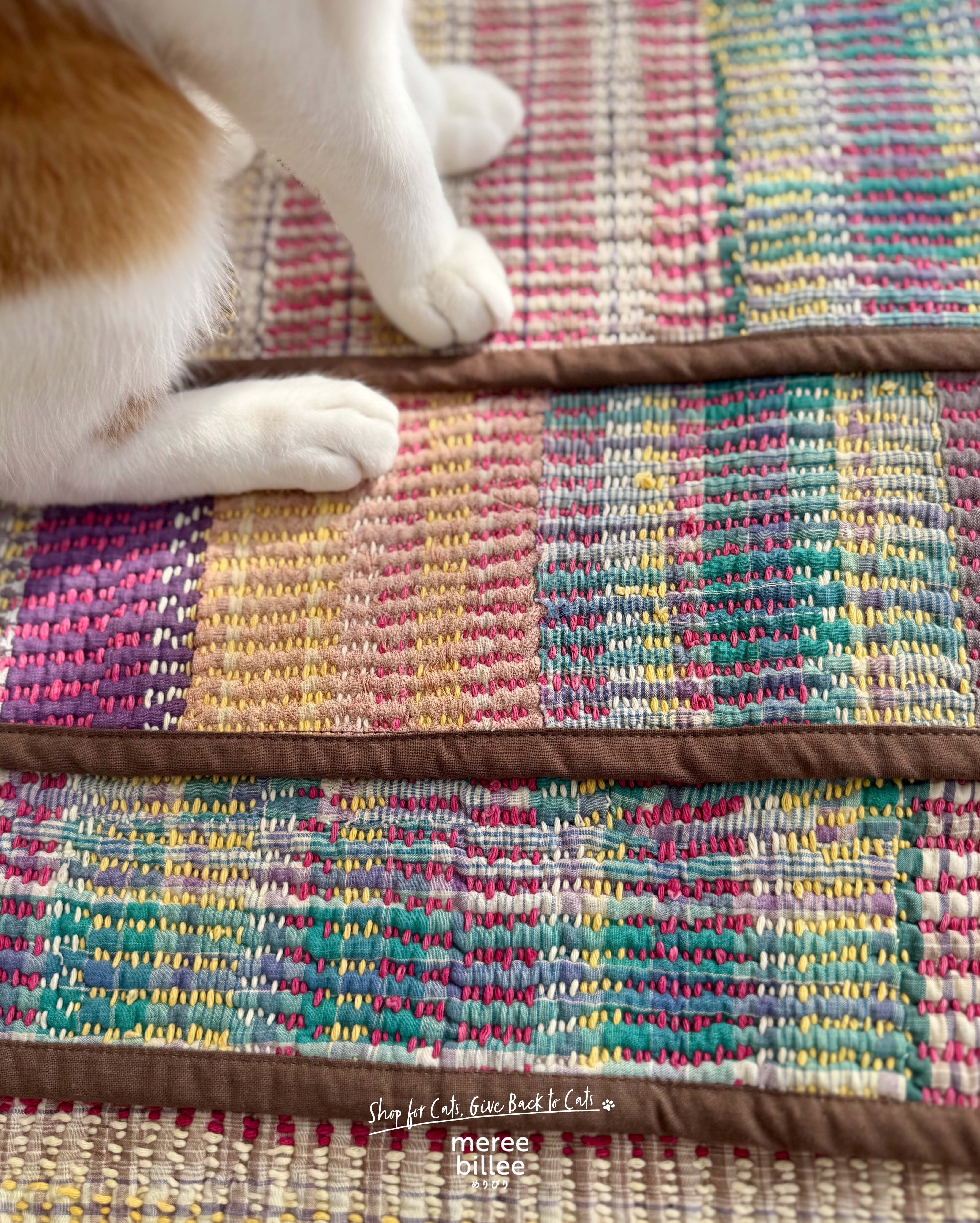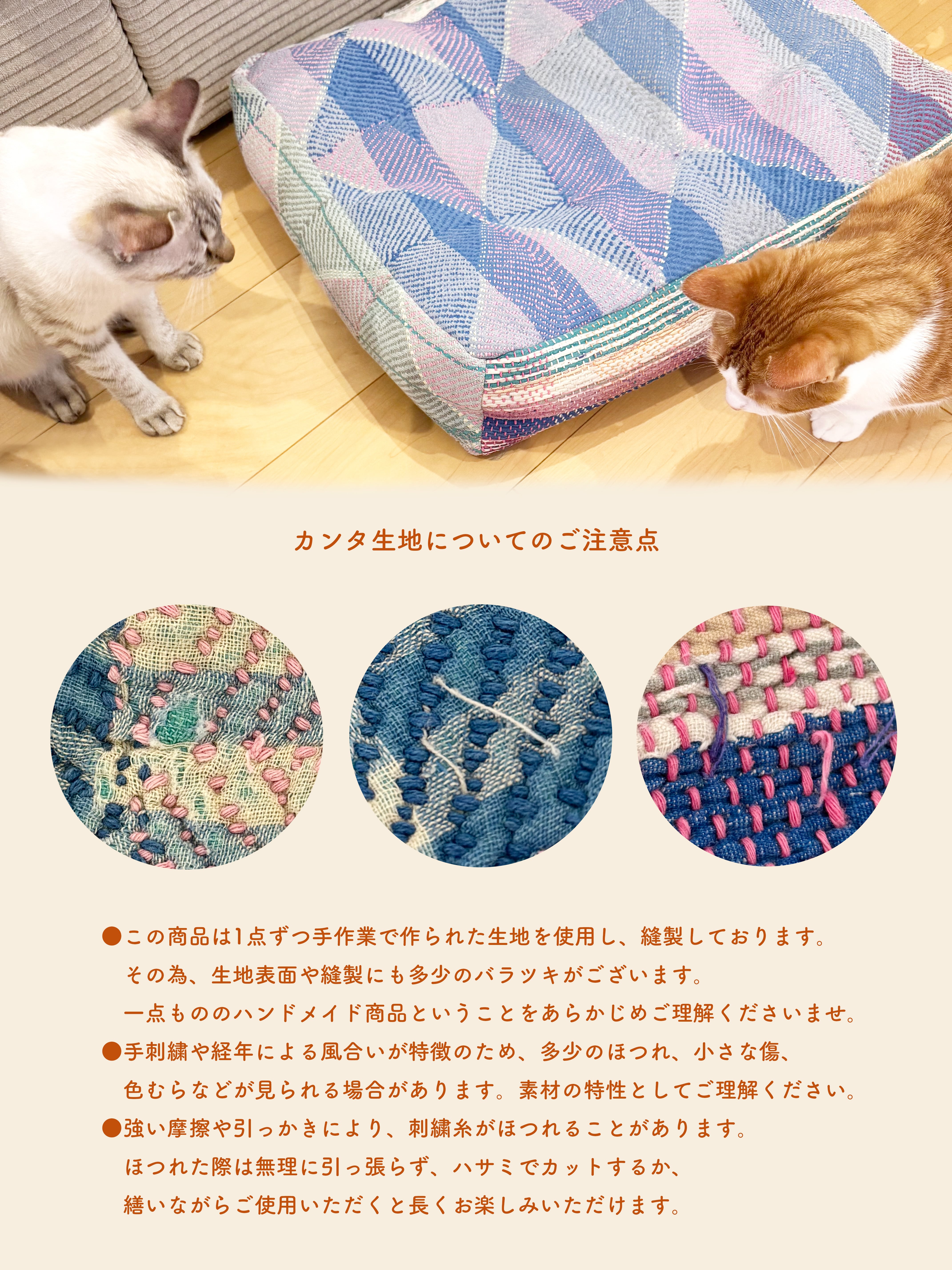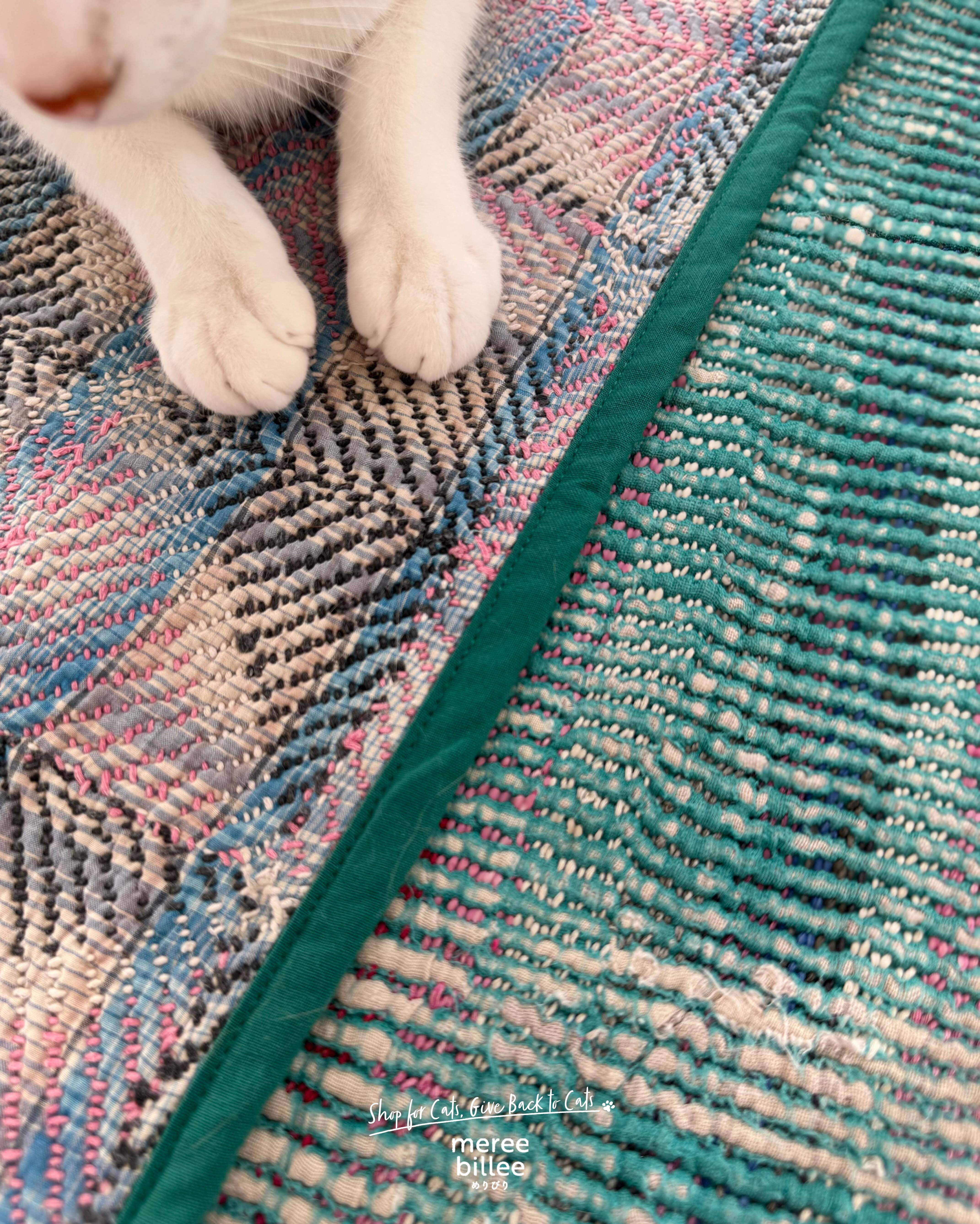 インドの伝統刺繍「カンタ」を使用した、猫ちゃんのためのマルチマットが登場。