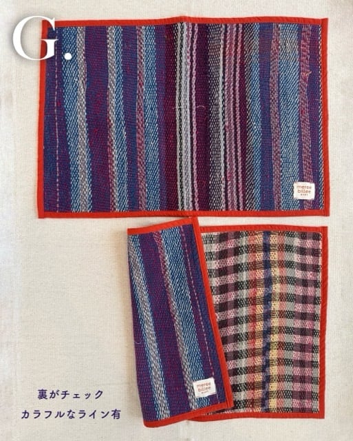 ●この商品は1点ずつ手作業で作られた生地を使用し、縫製しております。その為、生地表面や縫製にも多少のバラツキがございます。一点もののハンドメイド商品ということをあらかじめご理解くださいませ。●手刺繍や経年による風合いが特徴のため、多少のほつれ、小さな傷、色むらなどが見られる場合があります。素材の特性としてご理解ください。●強い摩擦や引っかきにより、刺繍糸がほつれることがあります。ほつれた際は無理に引っ張らず、ハサミでカットするか、繕いながらご使用いただくと長くお楽しみいただけます。●お洗濯により色落ちが生じる可能性がございますので、必ず洗濯ネットをご使用いただき単独でのお洗濯をお願いいたします。●漂白剤や蛍光増白剤の入った洗剤は使用しないでください。色落ちや変色の原因となる可能性がございます。●濡れたまま放置しないでください。●お洗濯後は、形を整えた上ですぐに干してください。●ご使用を繰り返すうちに色が褪せることがございます。●素材の特性により、洗濯後に縮みが生じることがあります。無理に引っ張らず優しくお取り扱いください。●摩擦により、他のものに色が移る場合がございます。特に湿った状態ではご注意ください。●色移りする場合がありますので、白物や淡色との組み合わせはお避けください。●強い日光や照明を長時間受けますと変色の可能性がございますのでお気をつけください。
