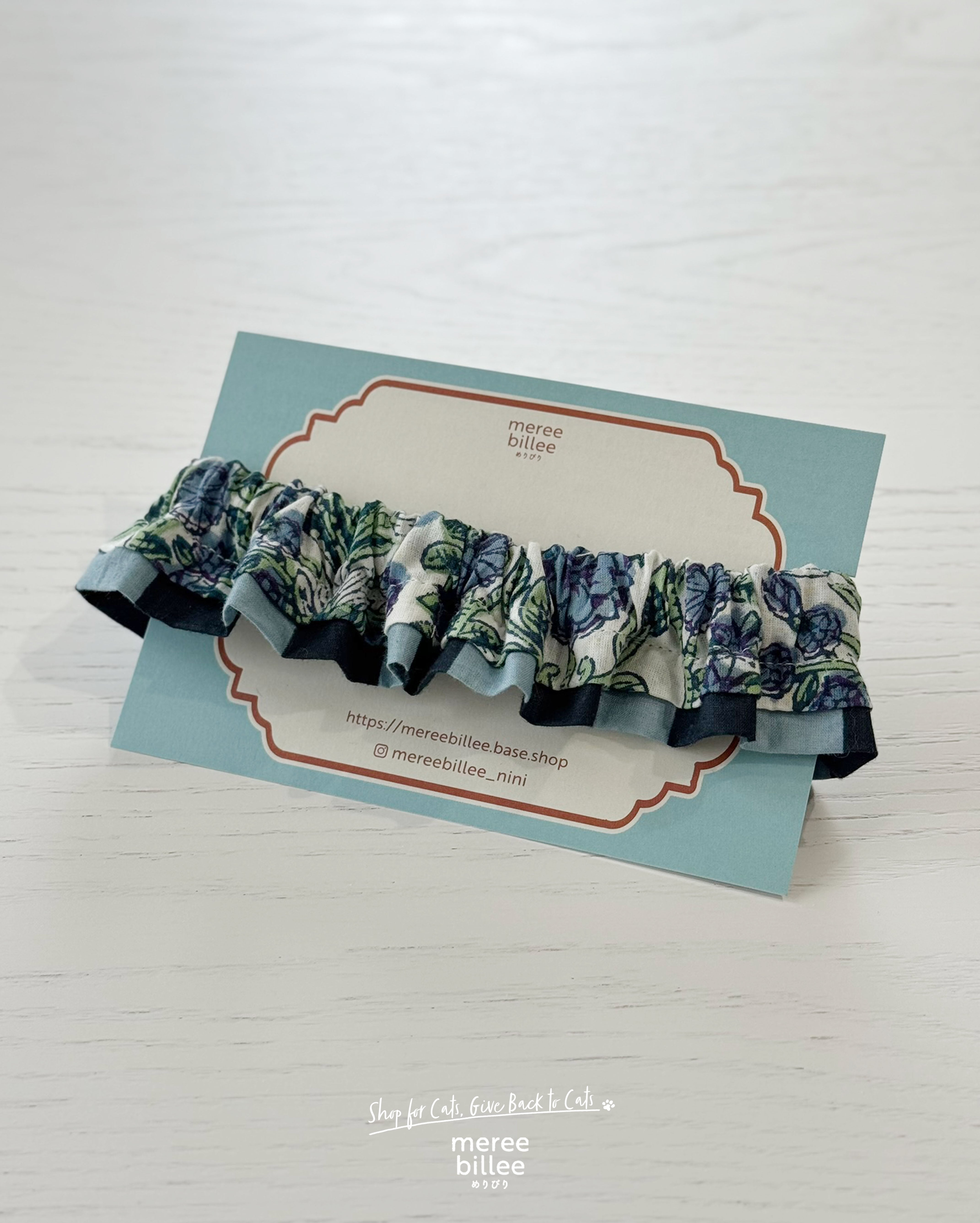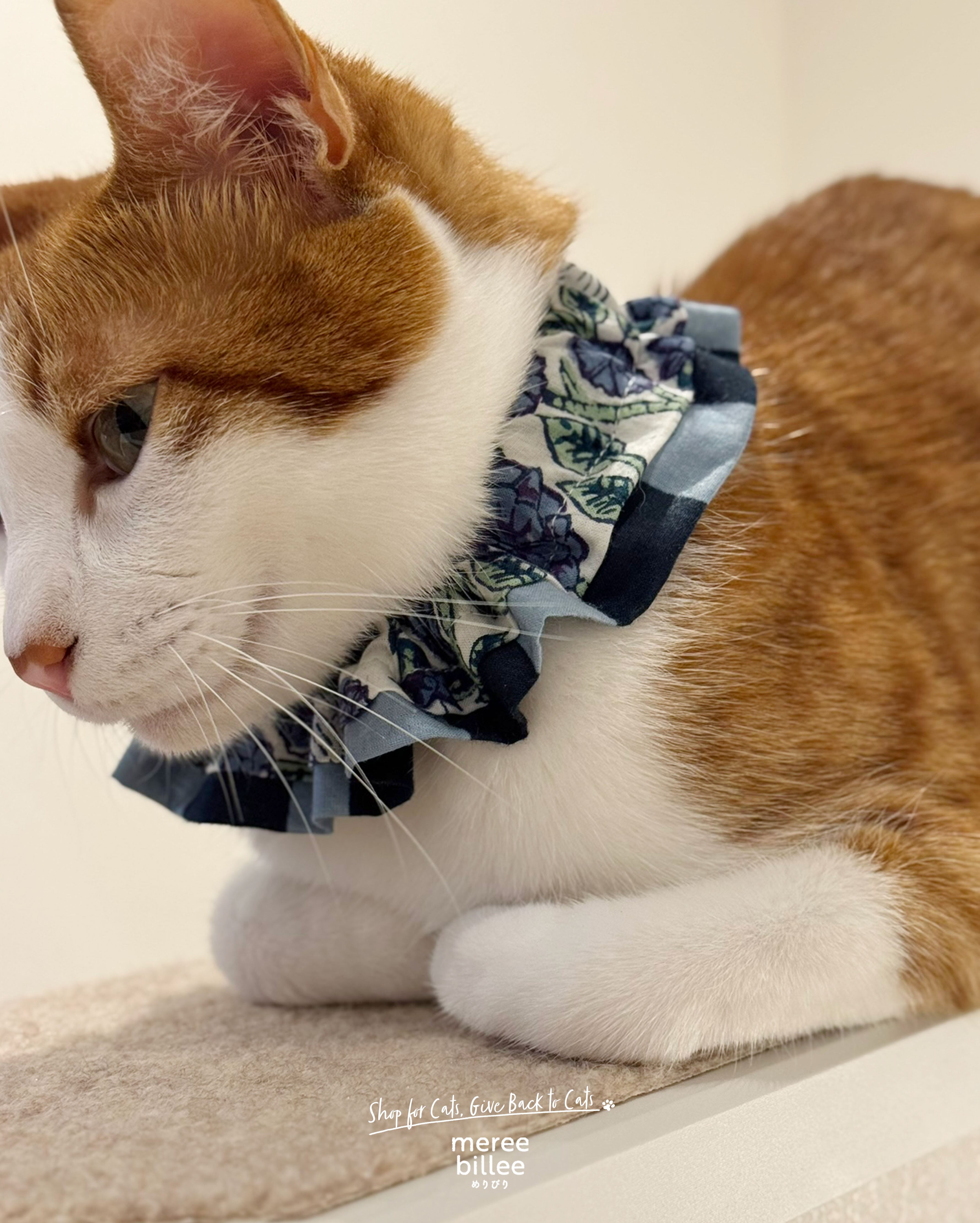 猫用フリル首輪|2way 取り外し可能|コットン100% 安全バックル【ブルー】