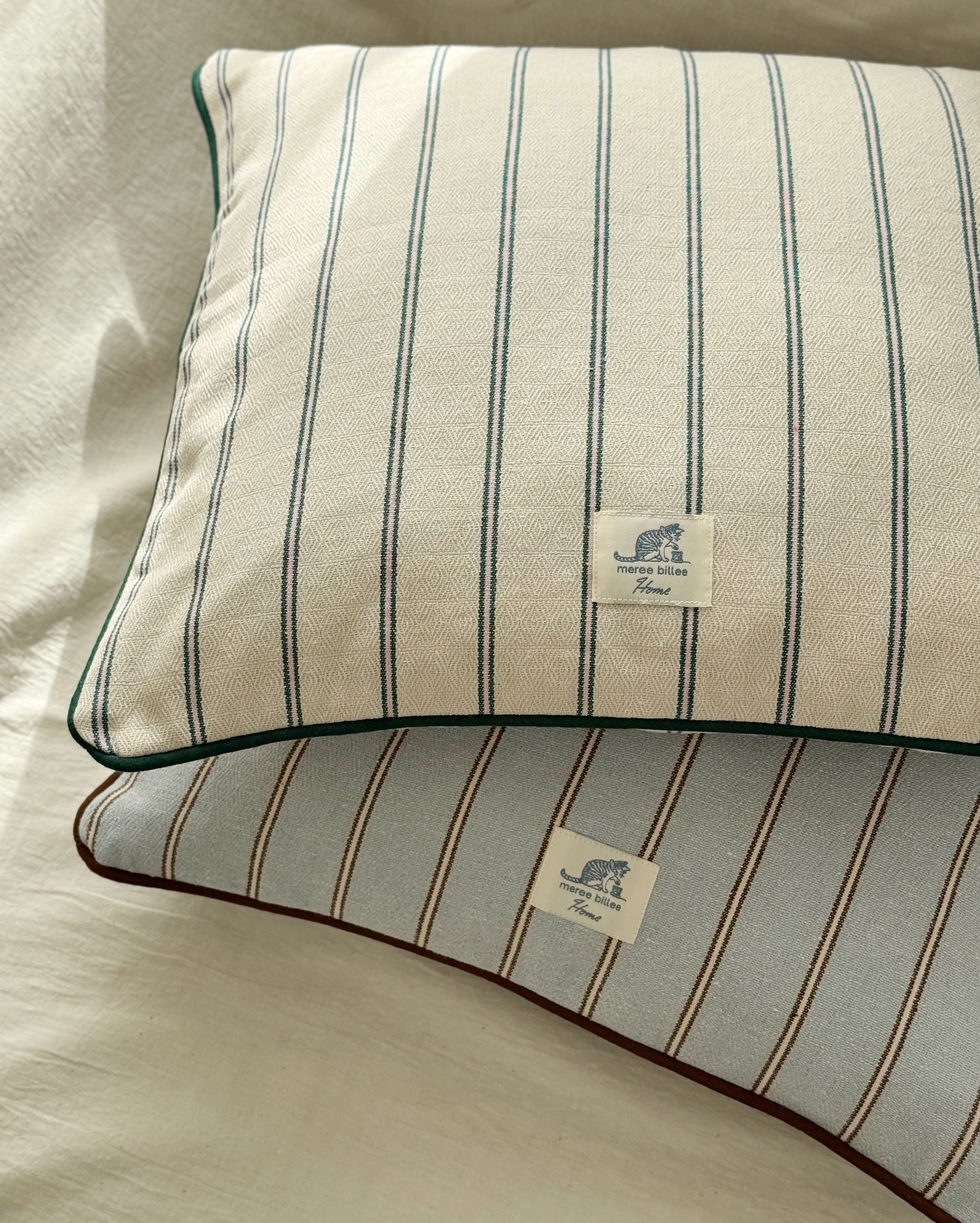 パイピングクッションカバー|猫と暮らすインテリア|シンプルストライプ【アイボリー】