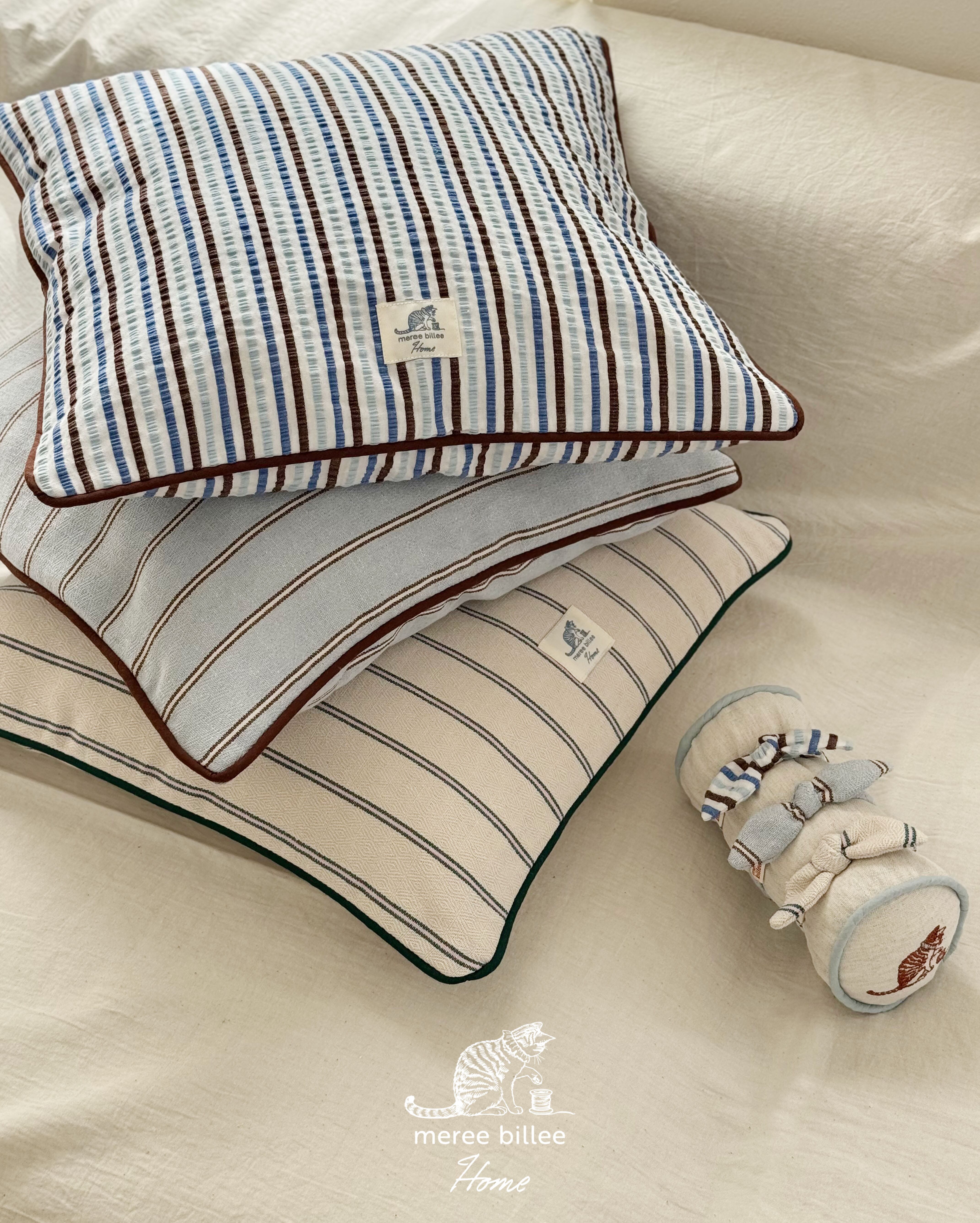 さりげない織り柄が入ったストライプ生地を使用したクッションカバー。