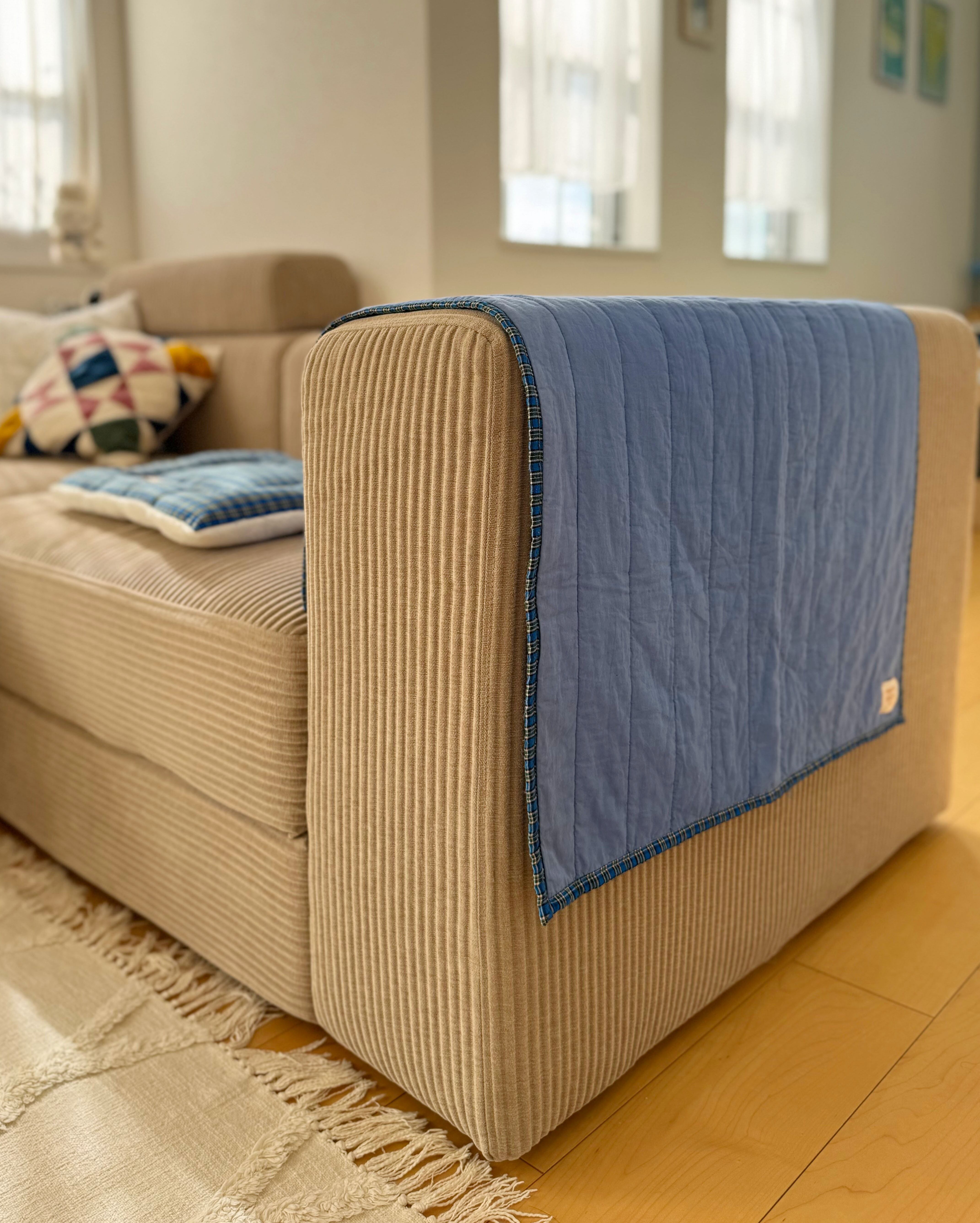 裏表で異なる生地を使用しており、お部屋の雰囲気やお好みに合わせて両面をお使いいただけます。洗うほど風合いが増して柔らかくなります。色褪せていく過程もぜひお楽しみください。